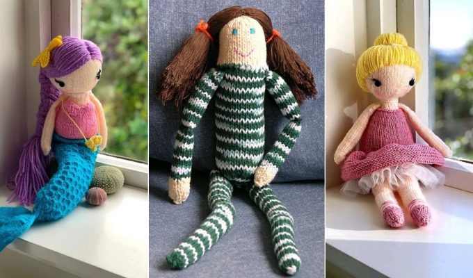 Love the angel outfit, wings, halo ring, and hair? Check out this knitted angel toy made from 2mm circular needles and soft stuffing.