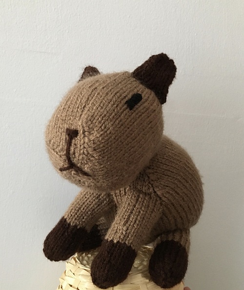 Try your hand at this cute and soft capubara stuffie toy by Aly. The pattern is knitted in seperate piece and then sewn together in the end.