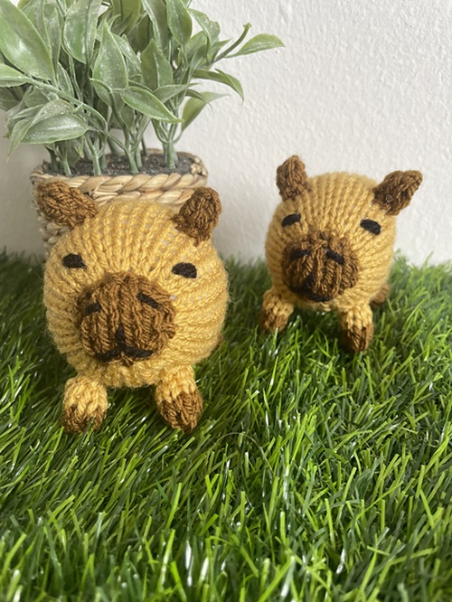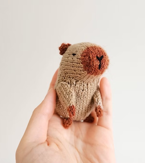 Have a look at this super cute baby capybara toy by Emma Whittle. All you need is to use DK yarn with a US 5 – 3.75 mm needle and some toy stuffing.
