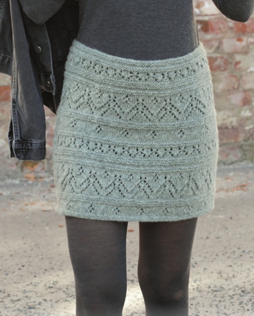 Have aa look at this simple and cozy knitted skirt designed by Garnstudio. The repeated tulip-inspired lace pattern gives it a textured look.