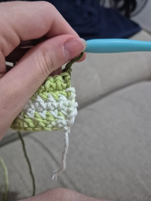 - Along the top or bottom edges, pick up one stitch to keep the edge even.