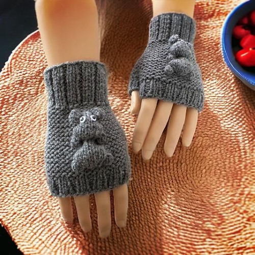 Alexandra Davidoff has knitted this super cute and easy-to-make fingerless glove. It features a tiny pom pom that acts as ears, and the face is embroidered.