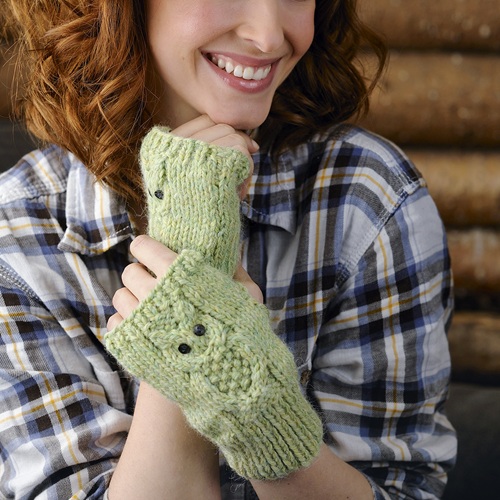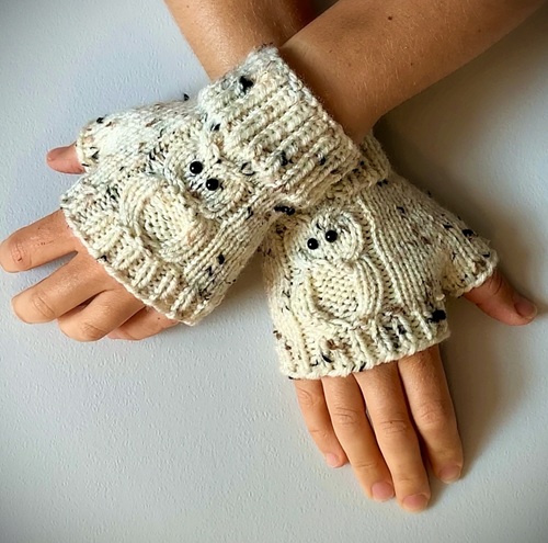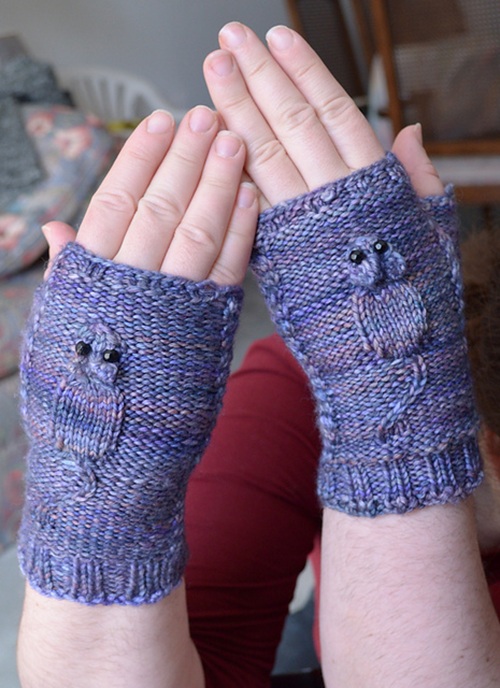 Who says gloves have to be plain and boring? Sarah Winsper has knitted this useful winter accessory with an owl design and button eyes.