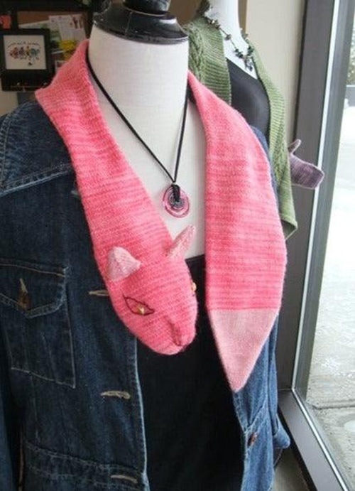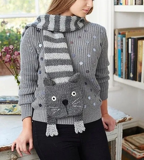 Wouldn’t it be cute to have a kitty-shaped scarf wrapped around your neck? Check out Biscotteyarns to create such an adorable accessory.