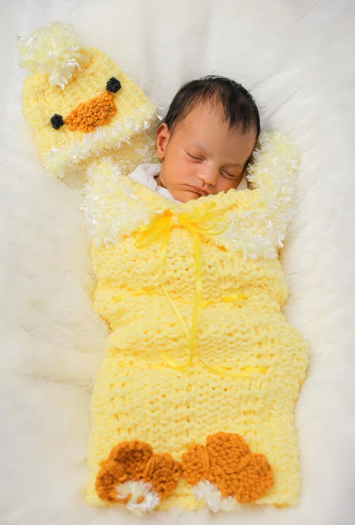 Turn your newborn into an adorable baby chick with this loom knit chick cocoon. ThisMomentisGood is behind this soft and cozy pattern.