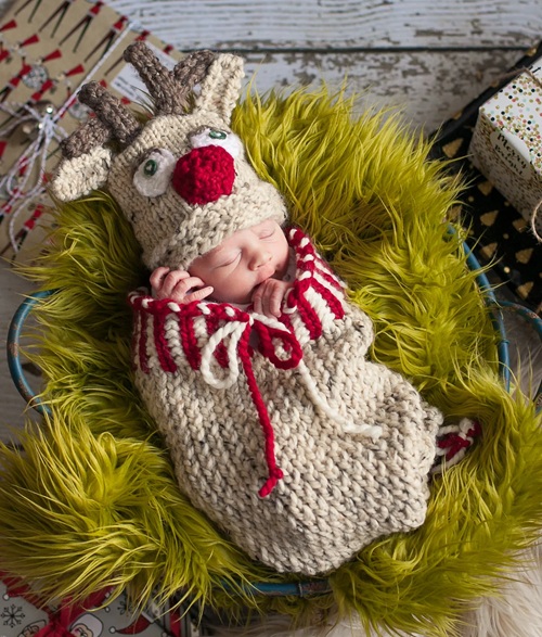 Get your baby ready for this Christmas with this comfy and easy reindeer cocoon. ThisMomentisGood has designed it with cute antlers and a red nose.