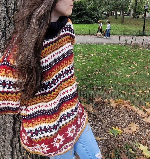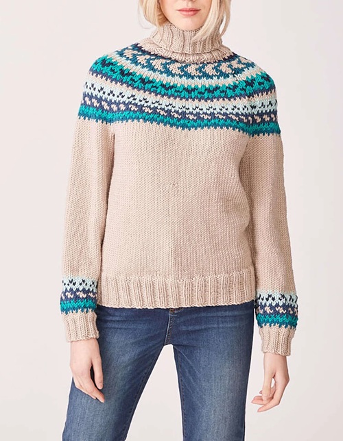 The simple fair isle sweater by Yarnspirations is just what you need this winter. Its subtle color makes it perfect to go with any outfit.