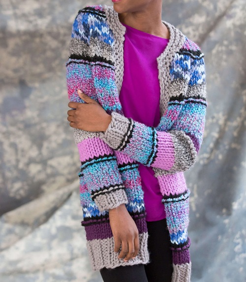 Why go with a regular cardigan when you can knit a stylish one at home with Yarnspirations’ blog post? It has a beautiful color combination.