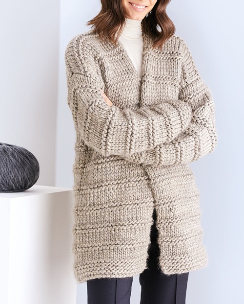 Are you a beginner looking to knit a cozy cardigan for winter? This knitted one with a cable design is what you should choose. Sirdar is behind this piece.