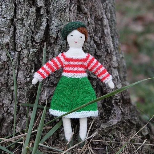 Try your hand at this mini Christmas set by Pernille B. Damsgaard. It also gives your simple dolls a cheerful look. You can knit coodinating accessory also.