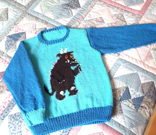 Try your hand at this unique Gruffalo child sweater by JP Print Design Goodies. It features a monster motif on the front, making it more appealing.