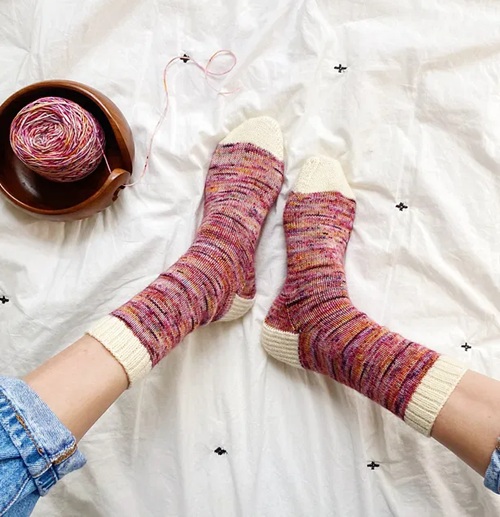 If your loved one likes stripes,s then these colorful socks are the best gift choice. Summer Lee has used light fingering yarn with a US 1-2.25 mm needle.