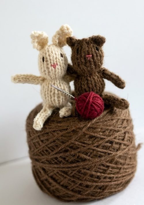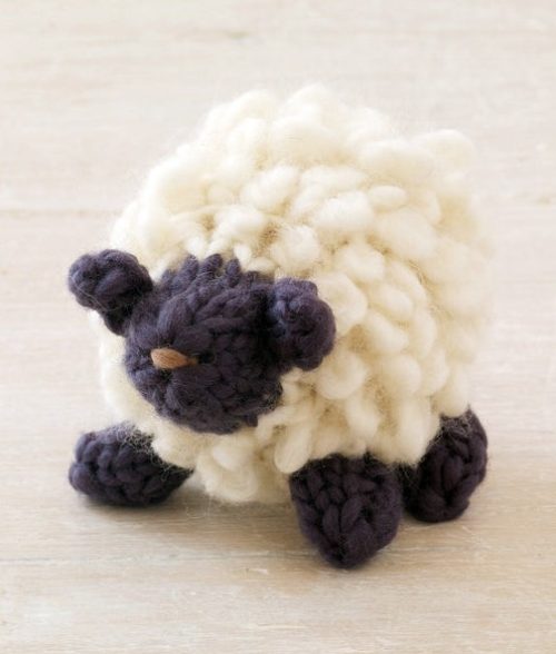 Check out this adorable, fluffy little sheep toy by Lion Brand. It can be easily knitted around 3 1/2 in. (9 cm) tall with chunky yarn by beginners.
