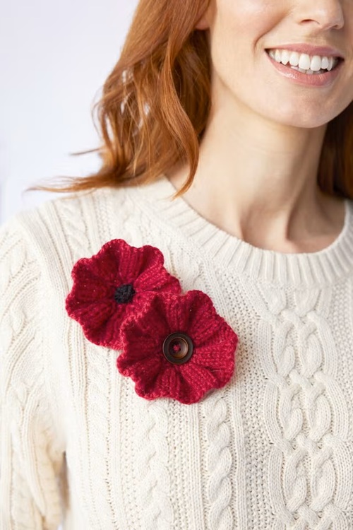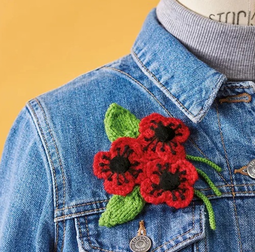 Take a look at these free knitting patterns to create lovely poppy-based functional and decor-worthy items. You’ll find brooches, washcloths, and wreaths in this article.