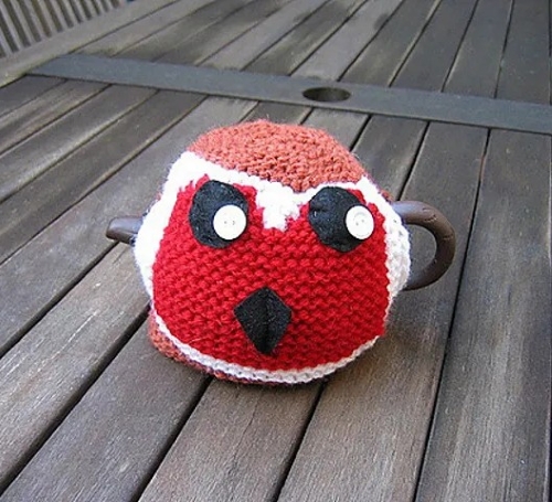 7. Hand Knit Robin Tea Cosy